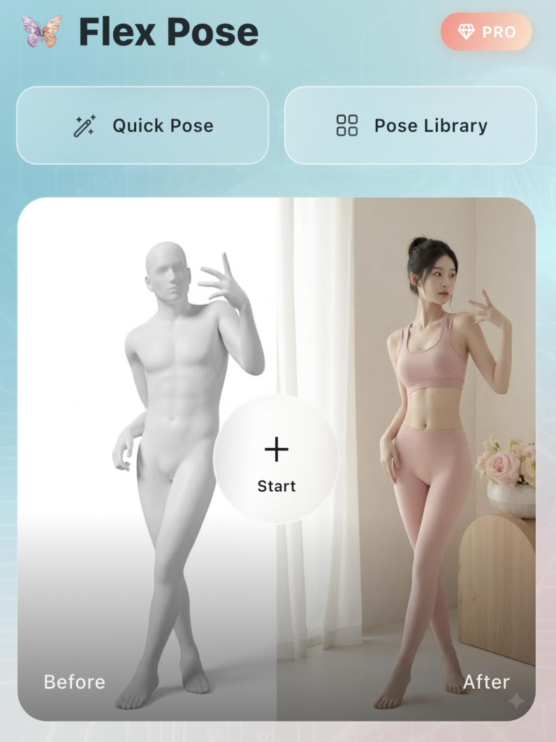 Never worry about awkward hands or stiff postures again. You just take the photo, and Flex Pose handles the rest. Choose from hundreds of professional poses and let AI replicate them perfectly.